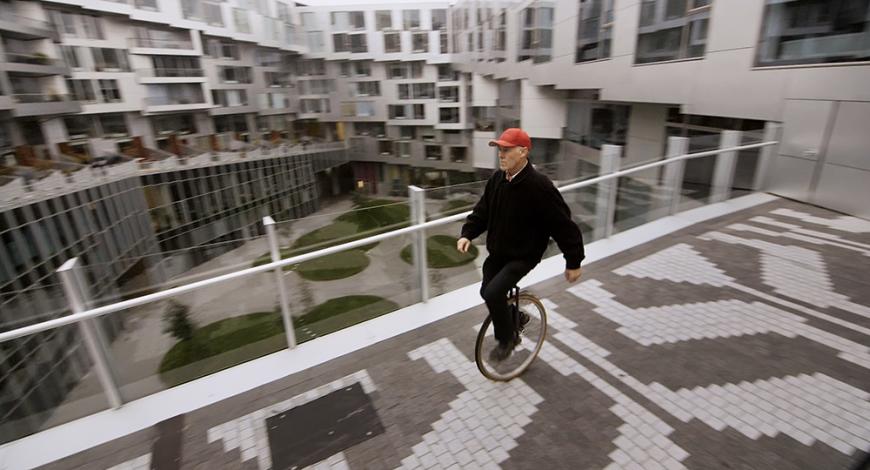 Proposed as part of our Close-up devoted to Ila Bêka and Louise Lemoine, The Infinite Happiness is an exceptional architectural experience. The film takes us to the heart of one of these contemporary residential complexes considered to be a new model of success: the giant "8 House”, which was designed in 2009 by Danish architects BIG-Bjarke Ingels Group on the outskirts of Copenhagen. Ila Bêka and Louise Lemoine tell the story of their month-long immersion in this vertical village, voted “Housing Building of the Year" in 2011. Like a Lego set, the film builds a collection of life stories, all linked by their personal relationship with the building. By showing the surprising results of this innovative social model, the filmmakers question the capacity of architecture to create a collective.