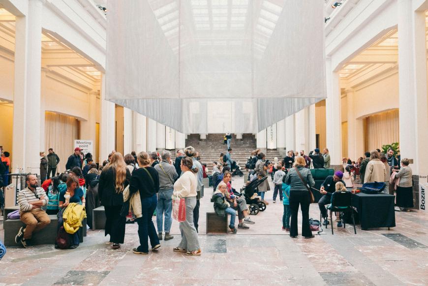 Belgian artist Michel François and the architecture firm Giusto Van Campenhout, together with designer Flore Fockedey, have given the Horta Hall a fresh new look. Their intervention casts Victor Horta’s grand architecture in a new light: a monumental curtain creates a room-within-a-room, a trompe-l’œil carpet playfully references the original marble, and new furniture invites visitors to sit and linger.