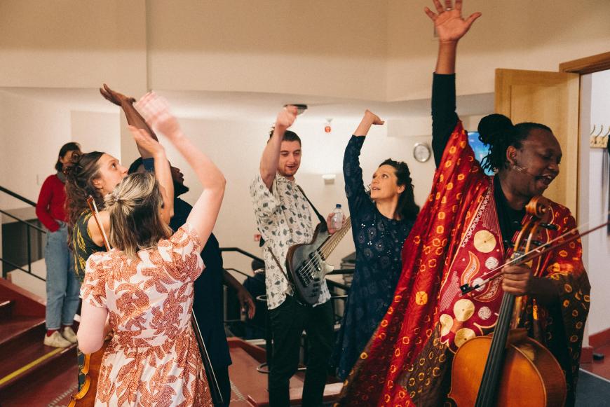 Le Bantu Ensemble est mon port d’attache musical. Notre travail porte sur l’amitié, l’identité et la communauté, mais aussi sur la recherche de l’inconnu, le fait de jouer sans réfléchir. En tant que quatuor, nous réunissons toute une gamme de sons. Notre pianiste, Fred Thomas, est un incroyable musicien baroque, nous jouons donc du Bach, que nous entremêlons d’autres styles. Le percussionniste Dudù Kouaté crée des sons cosmiques grâce à un immense arsenal de percussions africaines. Il ouvre un monde qui touche à l’improvisation et au free jazz. Le bassiste Alan Keary possède quant à lui un groove incroyable qui nous donne envie de danser. Tous ces éléments font partie de notre langage.