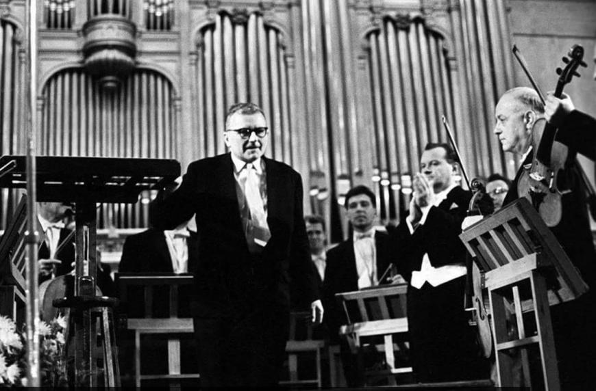 Ook in 1962 botste de componist nog soms op de grenzen van wat politiek aanvaardbaar was. In dat jaar ging zijn Dertiende symfonie, voor bas solo en orkest, in première. Het werk is volledig gebaseerd op gedichten van Yevgeny Yevtushenko, waarin de jonge dertiger het heersende antisemitisme op de korrel nam. Ondanks de ‘Dooi van Chroesjtsjov’, de periode na de dood van Stalin waarin de censuur wat minder strikt was, bleken de teksten van Yevtushenko nog te kritisch. De symfonie werd niet verboden, maar uitvoerders werden door de overheid afgeschrikt om deel te nemen. Dirigent Yevgeni Mravinsky (zie fotogalerij), een trouwe compagnon van Sjostakovitsj, trok zich terug, zogezegd omdat hij geen muziek met koor en vocale solisten wilde dirigeren. De solist, Boris Gmyirya, trok zich terug onder druk van de lokale afdeling van de Communistische Partij. Uiteindelijk kon de première – na heel wat getouwtrek – doorgaan, met Kirill Kondrashin op de bok.
